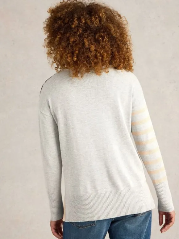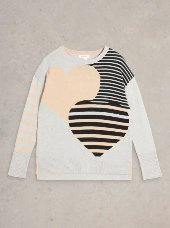 OLIVE STRIPE HEART JUMPER in NATURAL MULTI