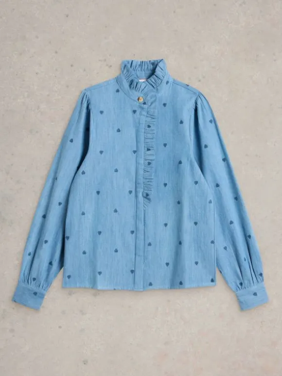 Pauline Embroidered Top in DENIM MULTI