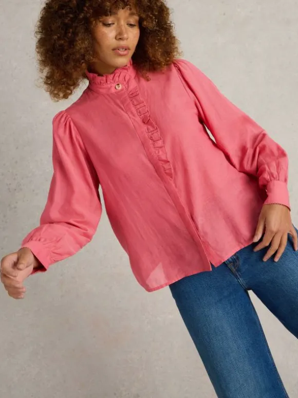 Pauline Frill Neck Top in MID PINK