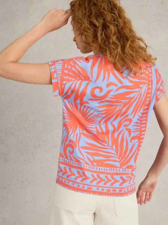 PRINTED NELLY NOTCH TEE in CORAL PRINT