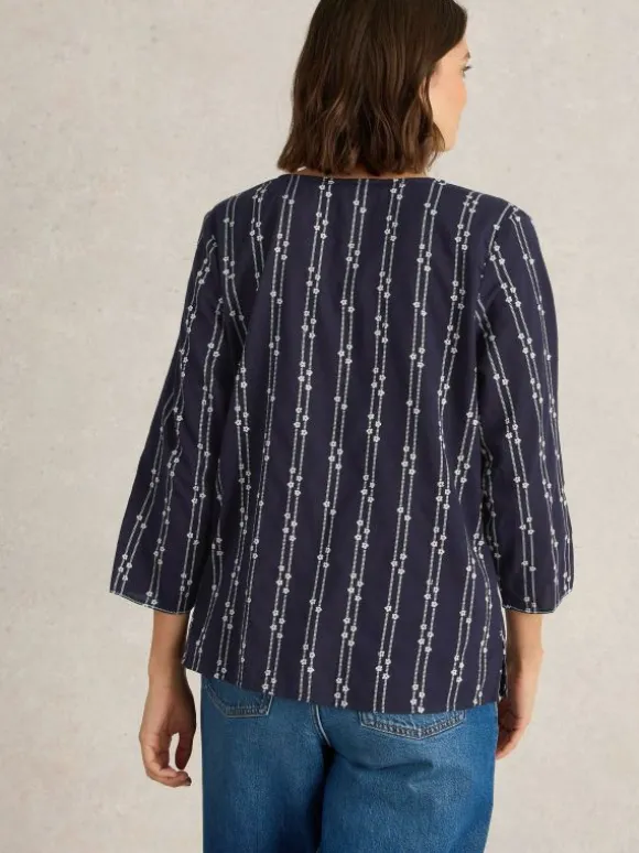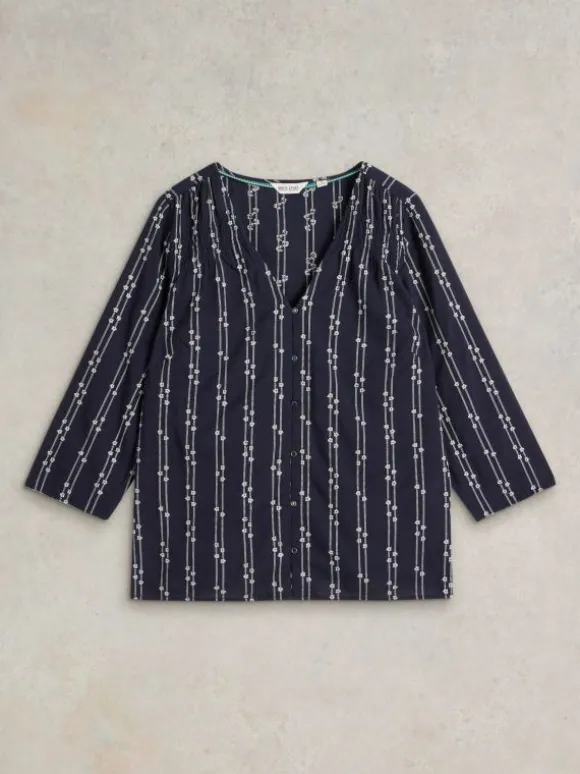Rae Organic V Neck Cotton Top in NAVY MULTI