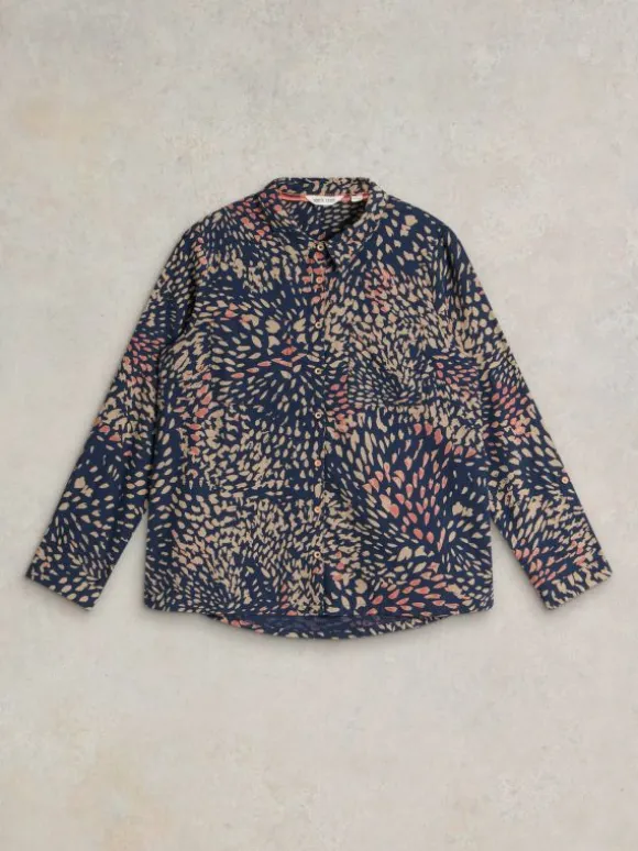 Sophie Organic Cotton Long Sleeve Shirt in NAVY PRINT
