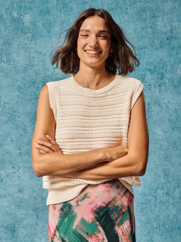 This tank is pretty versatile. You can wear it over shirts, with jeans, with a casual midi skirt. Even over a dress. The stitch detailing makes it extra special.