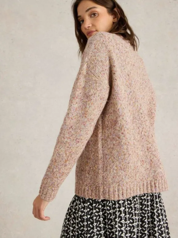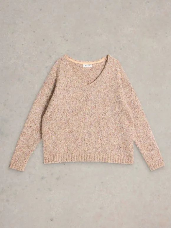 TEXTURED V NECK JUMPER in NATURAL MULTI