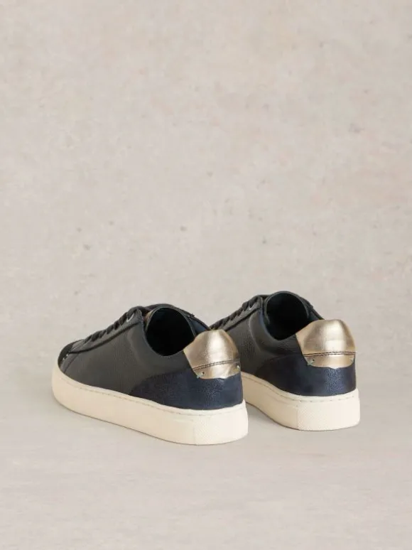 Toni Leather Flat Trainer in NAVY MULTI