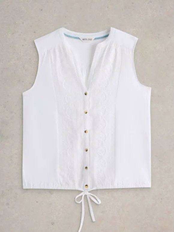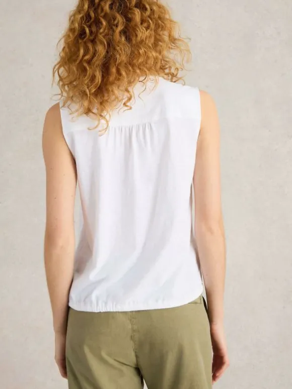 TULIP SLEEVELESS SHIRT in BRILLIANT WHITE