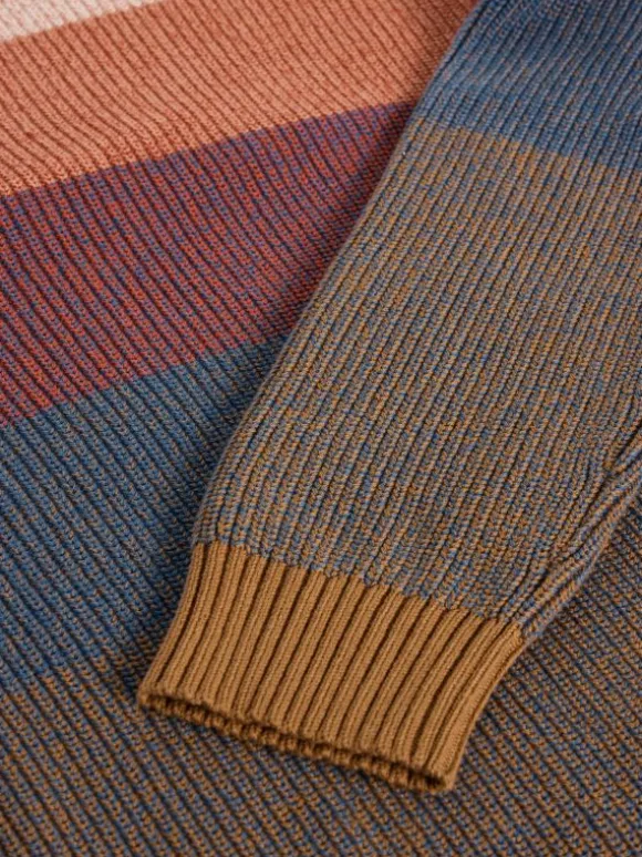 This comfy, colour block, crew neck knit is made completely from organic cotton. (Hey, a little alliteration never hurt anybody.)