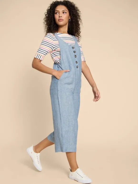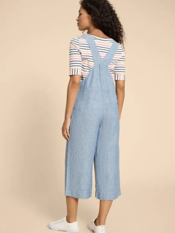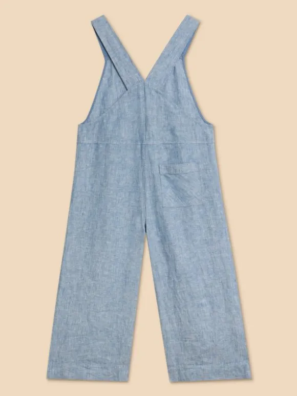 Viola Crop Linen Dungaree in CHAMBRAY BLUE