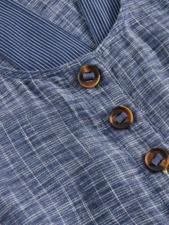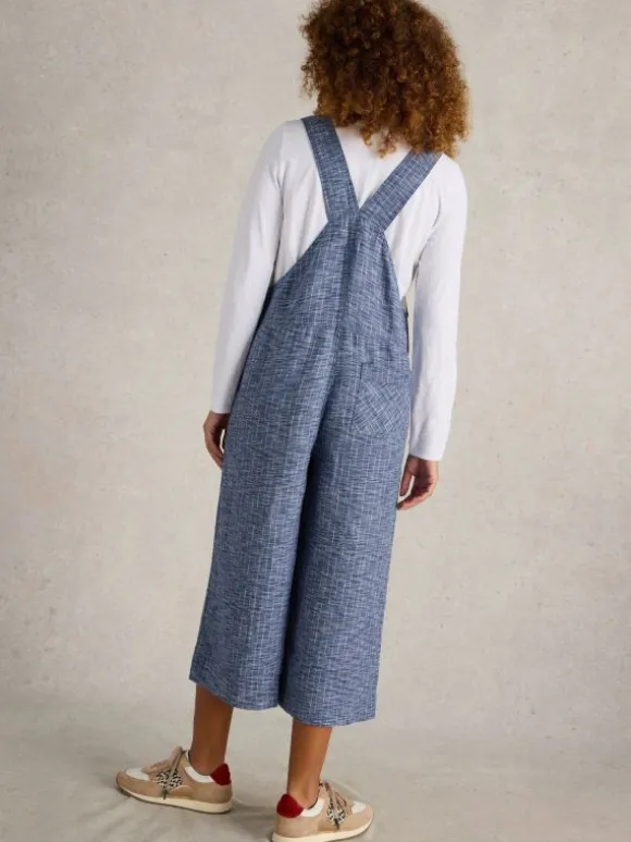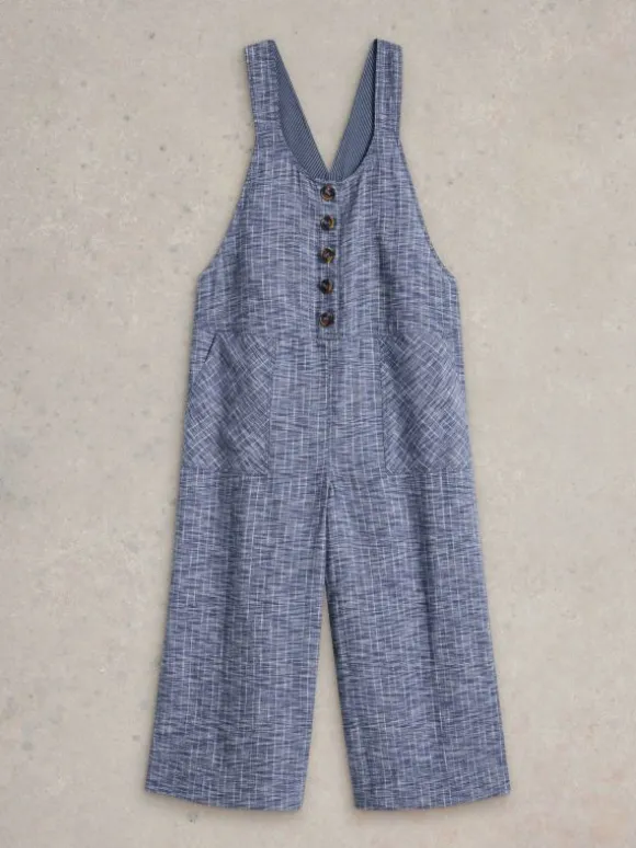 Linen chambray dungarees with roomy pockets and statement buttons. Just add white trainers and a tee.