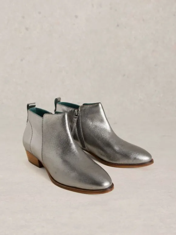 Willow Leather Ankle Boot in PEWTER METALLIC